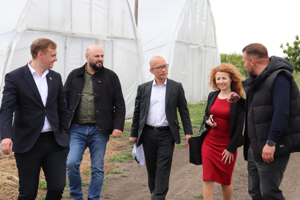 După întrevederea cu primarul orașului Sîngerei, Arcadie Covaliov delegația s-a deplasat în satul Pepeni, unde a fost întâmpinată de antreprenorul Vasile Maxian – inițiatorul brandului Cămara Fermierului și administratorul Fermei Familiei Maxian.