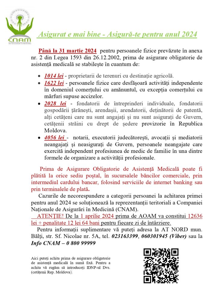 Consiliul de Administrație a ÎM „Centrul Stomatologic Raional Sîngerei”, ANUNŢĂ: