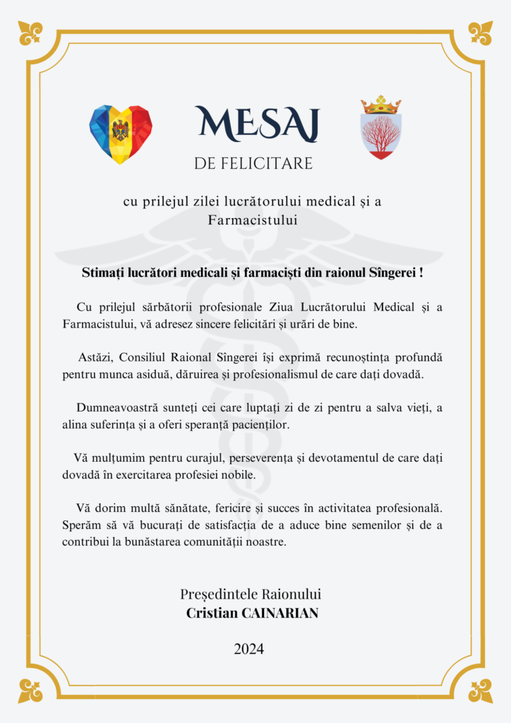 Cu prilejul zilei profesionale, vă adresez sincere mulțumiri pentru devotamentul, profesionalismul și grija constantă pe care o oferiți comunității.