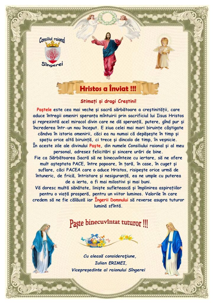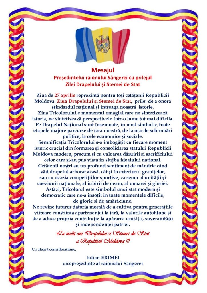 Mesaj de felicitare cu prilejul Hramului orașului Sîngerei