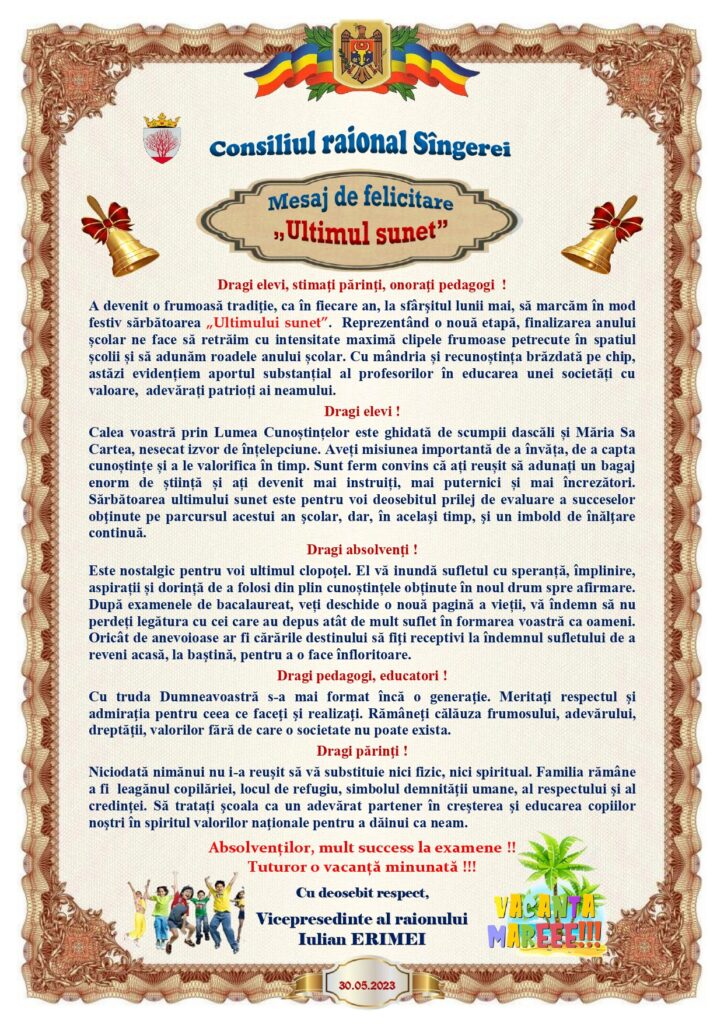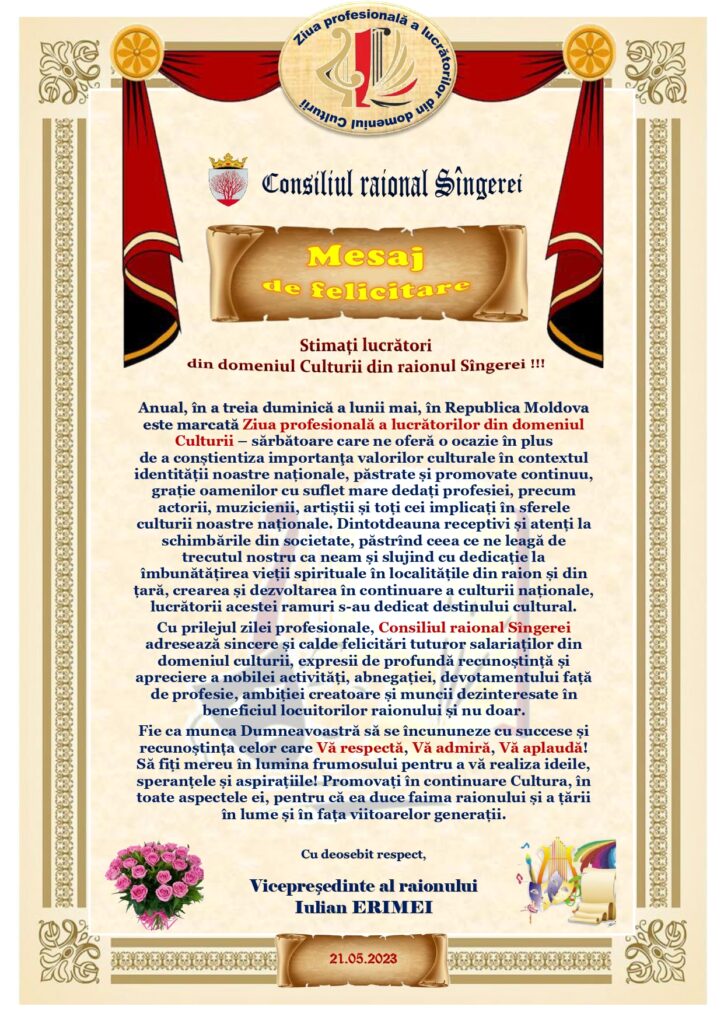 În această zi deosebită pentru Dumneavoastră, Vă adresăm cele mai sincere felicitări, însoțite de urările noastre de sănătate, proesperitate și succes în tot ce vă propuneți să obțineți.